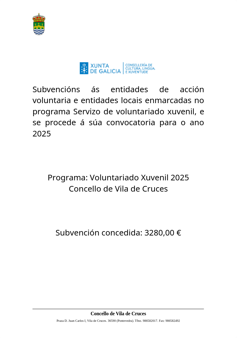 Subvencións ás entidades de acción voluntaria e entidades locais enmarcadas no programa Servizo de voluntariado xuvenil, e se procede á súa convocatoria para o ano 2025